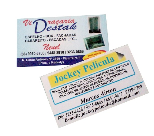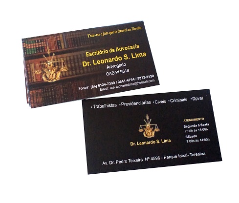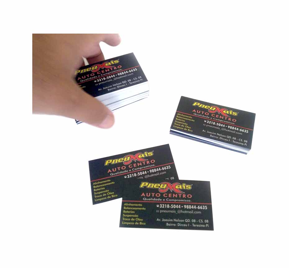 Cartão de Visitas em papel colche 300g laminação fosca e verniz localizado. entre outros materiais.